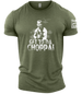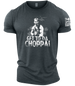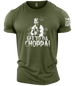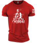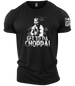 Channel your inner action hero. The Get To Da Choppa! - Gymtier Barbell Division Gym Men's T-Shirt is a tribute to the golden age of muscle and relentless determination. A standout piece from the Gymtier Barbell Division collection, this tee is for those who push through any jungle, whether it's on screen or in the squat rack.FEATURES